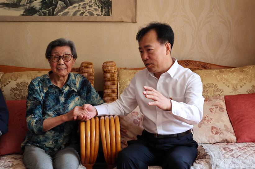 按照中组部的统一部署和省委教育工委要求,6月22日,黑龙江护理高等专科学校党委书记孙希昌、党委副书记闫杰一行来到学校两位离退休老党员家中走访慰问,同时颁发“光荣在党50年”纪念章。
