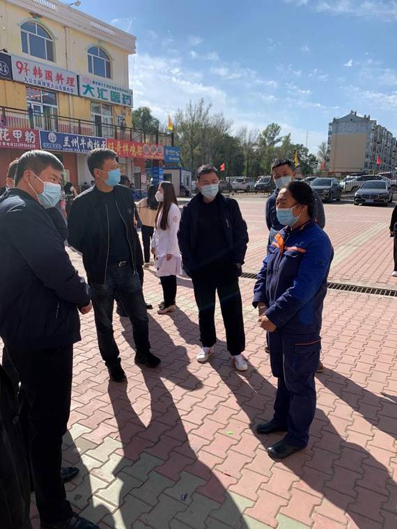 随后闫书记陪同街道办关主任先后到校医院隔离室、669商服两地了解具体情况,在669商服处,两位领导都对商服管理人员提出要求,严格按照防疫要求管控商服人员以及送货人员,并对快递点进行重点询问和检查。