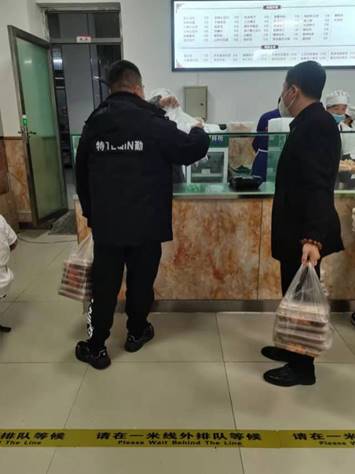 学史力行,实干为民。在保证全校区安全值守工作的同时,保卫科同志以满腔的热情投入到送餐工作中。他们组建了送餐微信群,制定了送餐时间表,确保隔离职工按时、足量就餐。