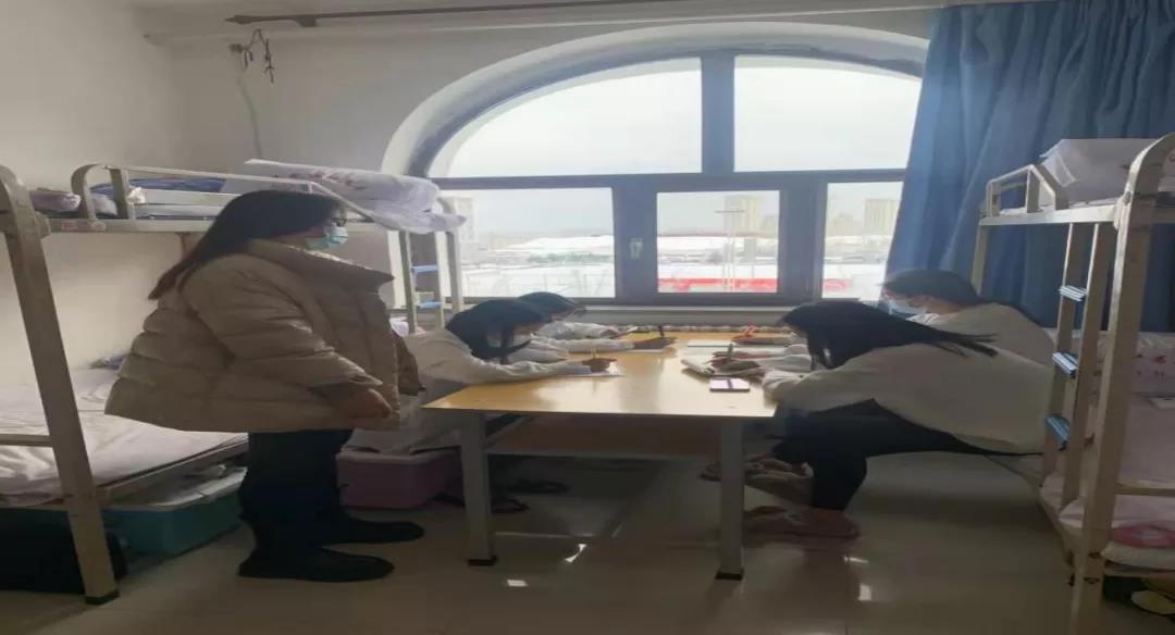他们的一天是这样的:早晨,深入班级,检查口罩佩戴、消杀及记录落实情况;上午,深入寝室查看防疫、卫生、网课情况;中午,带领学生会、志愿者清除主道冰雪;下午,开展学生心理测评,了解学生心理状况,谈心疏导……一天中,他们协助监督操场、商服、快递点、食堂等地学生口罩佩戴,组织排队扫码,与校医室、保卫科共同完成隔离人员消防演练。