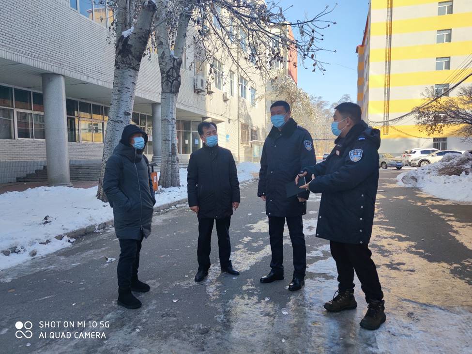 学校党委书记孙希昌上午刚刚解除居家隔离,下午立刻到南岗校区查看校区疫情防控、校园安全和冰雨造成的灾害情况。孙希昌书记查看了灾害天气造成的树枝折断情况,冰溜子清理情况和校园清雪情况,叮嘱后勤每天进行巡视、清理,避免造成学生伤害,保证学生在校园内安全。