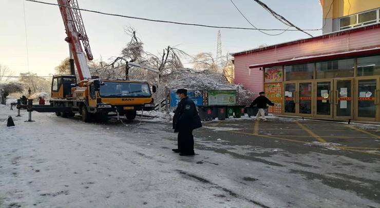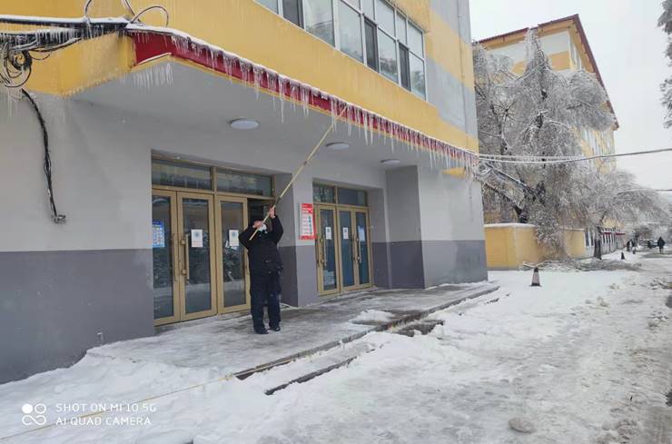 近期受最强寒潮影响,一场突如其来的“冻雨”席卷哈尔滨。极端天气导致树木折断、屋顶积雪,也给我校带来了重大安全隐患。保卫处、总务处、学生处等部门联动及时排查险情,处理安全隐患。11月8日当晚由于输电线结冰造成南岗校区大面积停电,主管副校长杨丽妲第一时间安排相关部门启动应急预案、排查校园内险情、及时解决在校师生困难,确保校园安全。保卫处、学生处在停电第一时间迅速反应、严密排查、启动应急预案,为停电的学生宿舍提供应急照明。