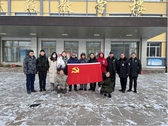 经过近两个小时的奋战,学校教学楼门前的积雪全部清理干净,为师生的出行提供了安全保障。党员干部用自己的实际行动践行初心使命,让胸前的党徽闪光,让鲜红的党旗在美丽的校园高高飘扬。