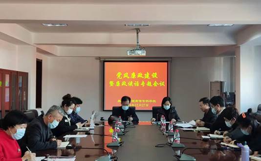 2021年12月27-28日,学校党委分批次召开了全校党风廉政建设暨廉政谈话专题会议。参加会议的有学校党政领导班子成员,各系(部)、处(室)、江北校区、附属二院的主要负责人,财务、公务接待、公车管理、食堂、接待场所等重点岗位负责人、副科级以上干部,共计百余人参加会议。