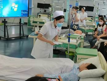2022年7月11日上午,国家级继续医学教育项目卫生职业院校护理教师教育教学改革能力提升培训班学员来我校护理实训中心进行工作坊内容交流学习。
