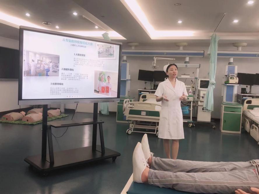 工作坊第一站由基础护理教研室主任孙伟与大家分享了“对护理技能大赛的思考”,分别从指导教师视角分析大赛、从素质教师的视角感悟大赛、从专业教师视角转化大赛。