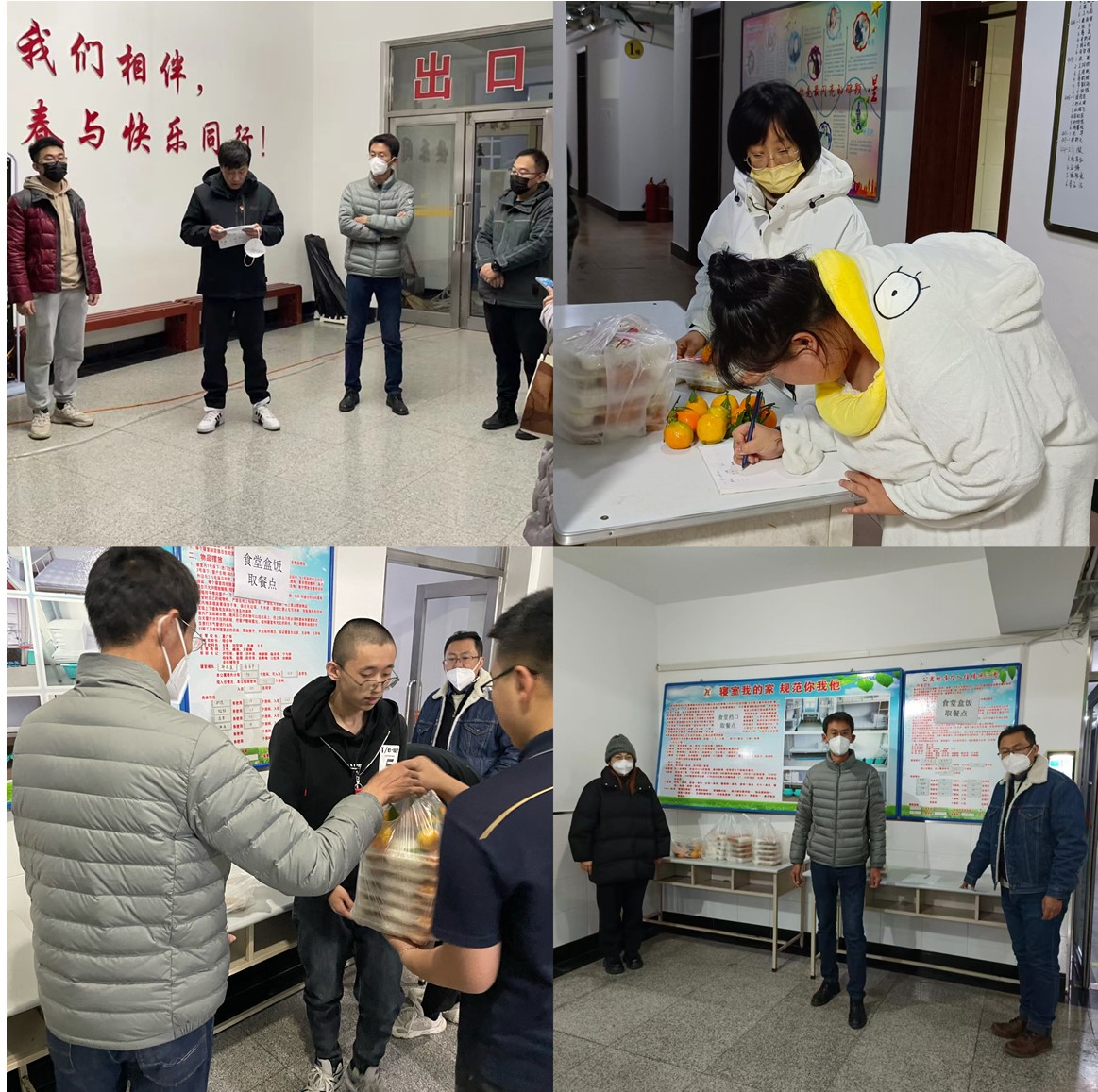 入校抗原检测工作顺利结束后,教工防疫突击队对今天的工作迅速进行总结,又开始了晚间送餐的工作。“爱心送餐暖人心,助力疫情情意浓”。学生入校闭环管理静默期间,为满足学生的生活需求,教工突击队的老师们分组为学生送餐到公寓楼下,协助学校后勤做好清点配餐的服务,确保已入校的同学能准时吃上食堂热乎的饭菜。