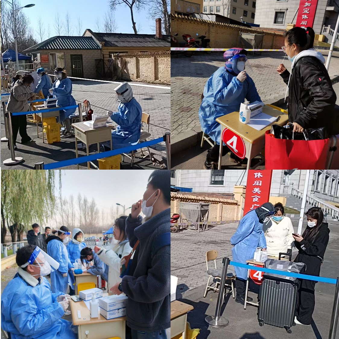 10月25日早6:40,教工防疫突击第一分队队员准时在阿城校区门口集合,队长孙成主任对第一分队队员的工作分工、服务区域划分、服务内容和时间等做了详细要求和部署,各位教工突击队员分为六组同时检测,有序轮岗,各司其职,通力协作。教工队员们热情提醒同学们规范佩戴口罩,入校检查健康码、行程卡,耐心指导返校报到学生写好信息报备,进行抗原检测,一步步有序进行,耐心处理服务过程中出现的各种细节问题,顺利完成800余份入校同学的抗原检测。
