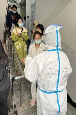 防疫支援,他们多面出击。作为教工防疫突击分队,队员们就像一块砖,哪里需要哪里搬。支援系部的迎新工作,上岗第一天接待新生2000余名。配合全员核酸采集工作,连续三天,每天完成3000余名教职工、返校学生的核酸采集。负责入校人员抗原检测工作,在学校东门、南门设立室外抗原检测点,全天为入校人员检测抗原。协助食堂送餐工作,每餐千余份餐品及时送到订餐学生手中。参与校区安全巡查工作,每日从早7:00—晚6:00十一个小时不间断巡查,保障校园安全。应对突发疫情防控工作需求,经常在晚10点之后为新增隔离学生搬运、搭建床铺。