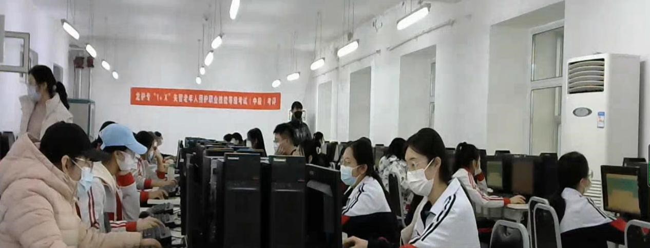 我校作为“1+ X ”失智老年人照护优秀试点院校,为保障本次考核的顺利进行,严格按照职业技能等级证书考试相关规定和学校疫情防控校园封闭管理要求组织与实施,参加考评教师按照疫情防控要求提前三天居家静默。北京中民福祉教育科技有限责任公司对我校进行全程线上指导,共同完成考务组织、考场布置等工作。在学校领导高度重视下,相关部门的大力支持下,各组人员周密部署,精心组织,密切配合,确保各项工作有序落实。11月19日上午全体工作人员进行新冠抗原检测后进入工作区域,辅导员老师们为考生测量体温、检查健康码并做登记。14:00进行理论考试,15:30进行实操考试,教务处刘瑾、付广权科长对考评情况全程督导,学生规范答题,考场纪律优良,凭着过硬的专业基础知识,稳定发挥。