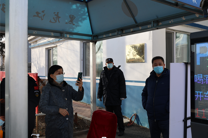 张晓杰校长一行按疫情防控要求先在校门口进行入校前扫码、测温、核酸抗原检测和登记,之后分别到校门卫、快递室、商服、教学楼、食堂、实训中心、校医室、隔离室、学生寝室、监控室、浴室等场所进行实地检查。