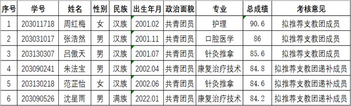 经自愿申报、多部门资格审核、校项目办组织集中考核等流程,按照成绩由高到低,最终确定拟推荐支教团成员3人、拟推荐支教团递补成员3人,现公示如下: