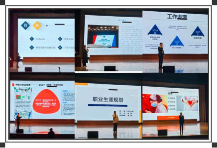 决赛中,参赛选手们通过现场PPT展示,分别从自我认知与评价、职业环境的认知、职业目标的确立、职业路径与评估等方面进行汇报,向评委和观众展现了一个个充满个人魅力的未来职业规划蓝图。