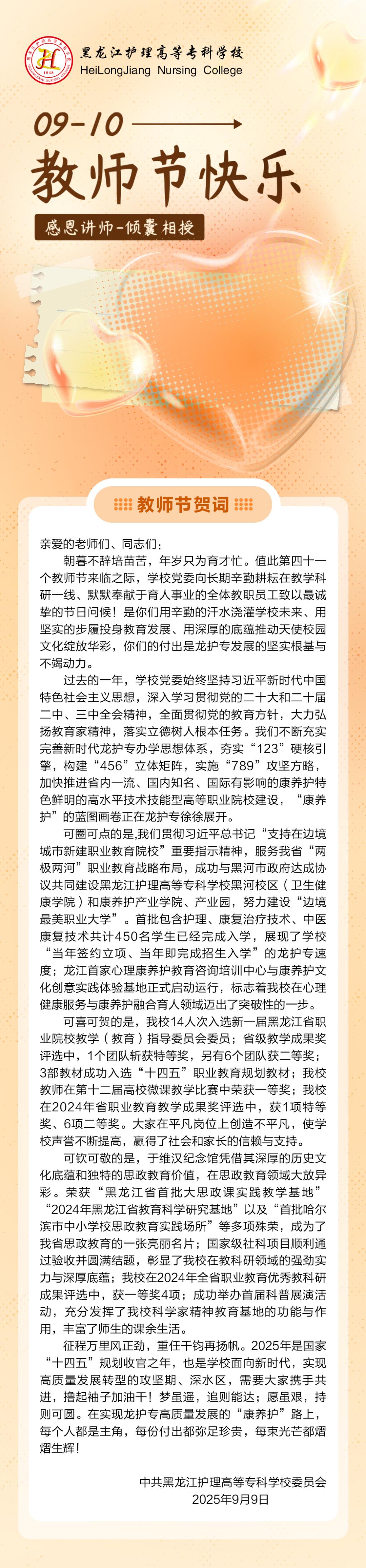 以教育家精神铸魂强师 谱写教育强国建设华章——黑龙江护理高等专科学校庆祝第41个教师节系列活动