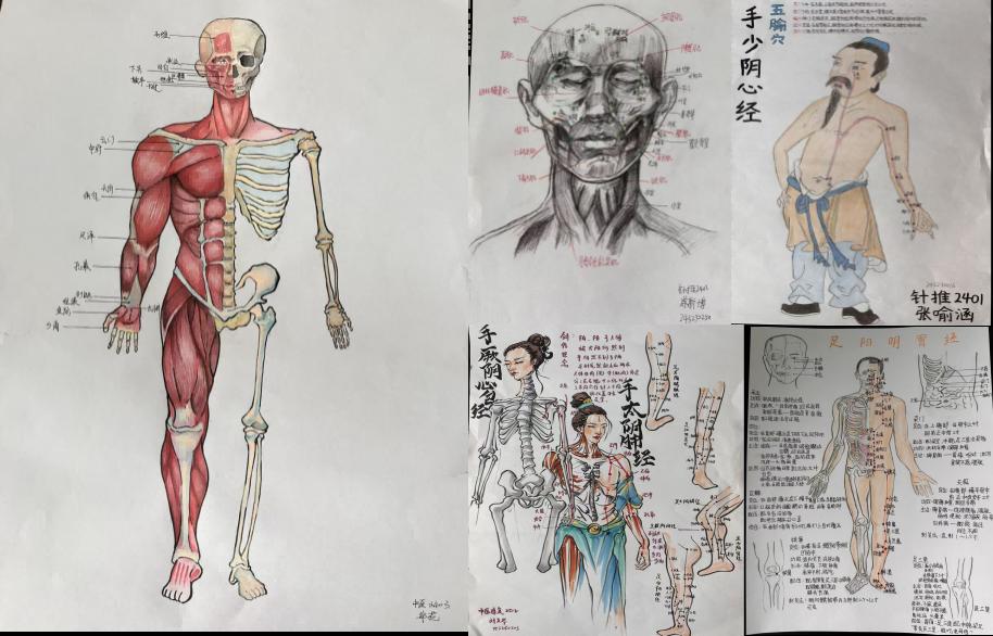 活动得到了同学们的积极响应和热情参与,参赛作品100余幅,最终评选出一等奖(6名)、二等奖(12名)、三等奖(18名)。获奖作品不仅准确呈现了经络腧穴的核心知识,更将人体内在的“山川河流”与“星辰孔穴”描绘得栩栩如生,赋予了中医理论别样的生命活力与美学价值,充分展现了同学们扎实的专业功底和蓬勃的艺术创造力。