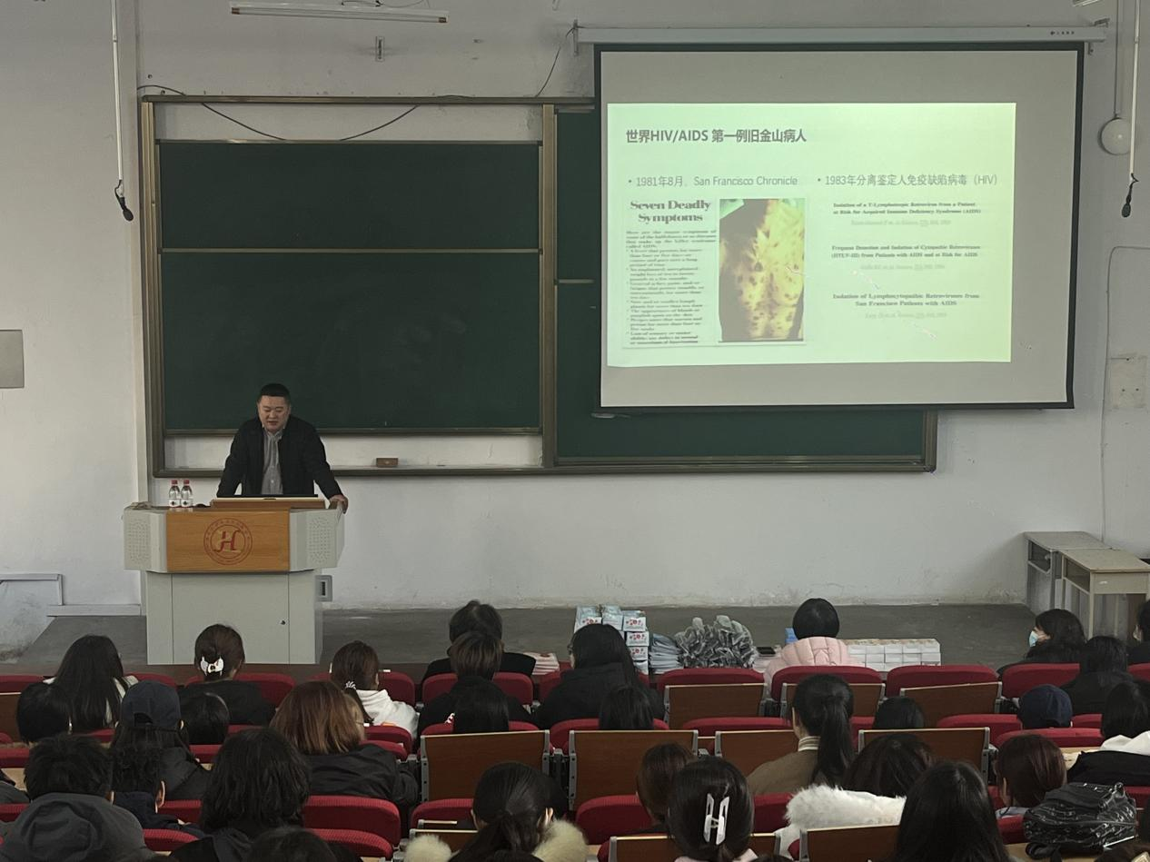 南岗校区培训中,潘松南主任从临床角度深入介绍艾滋病病程发展与治疗进展,阐释“治疗即预防”理念。此外,他补充了结核病预防要点、关注感染者心理疏导与同伴互助的重要性,强调规范治疗可让HIV感染者拥有近于常人的寿命,有效缓解了师生的认知焦虑。
