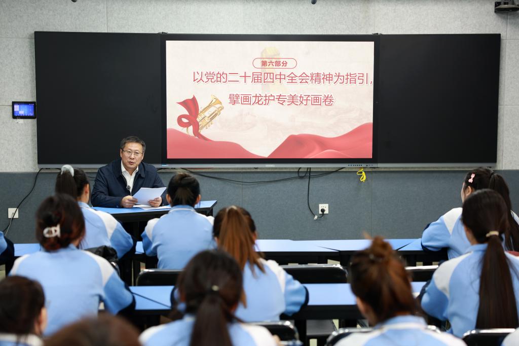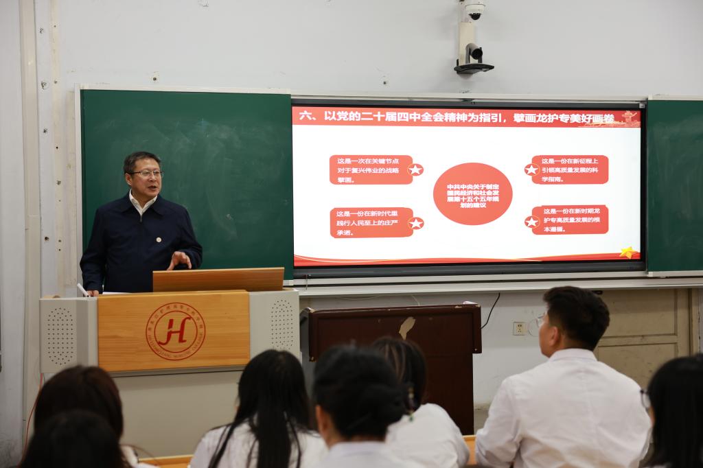 田书记在讲座中回望了学校七十七载奋进路,从建校初期师生携手拓荒的栉风沐雨,到新时代建设“康养护特色鲜明的高水平技术技能型高等职业院校”的众志成城,鼓励全校师生赓续伟大抗战精神,奋进“十五五”新征程。通过深刻解读党的二十届四中全会精神,进一步擘画龙护专美好画卷,激励全校师生传承不屈风骨,践行时代答卷。