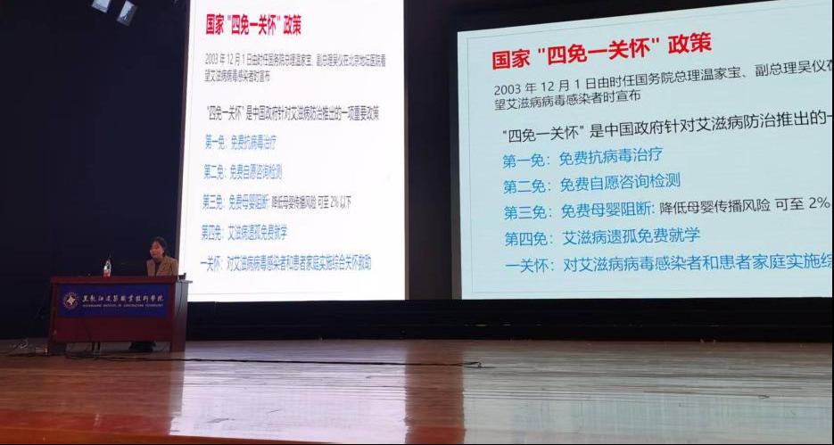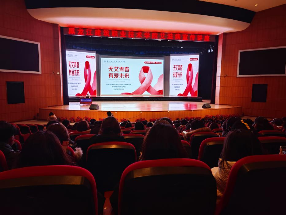 为响应2025年“社会共治,守正创新,终结艾滋”的世界艾滋病日主题,切实提升青年学生艾滋病防治意识与自我保护能力,12月18日,黑龙江护理高等专科学校联合哈尔滨医科大学,走进黑龙江建筑职业技术学院共同举办艾滋病防治专题宣传讲座。哈尔滨医科大学微生物教研室李妍教授受邀担任主讲,师生代表共计800余人现场聆听了讲座。
