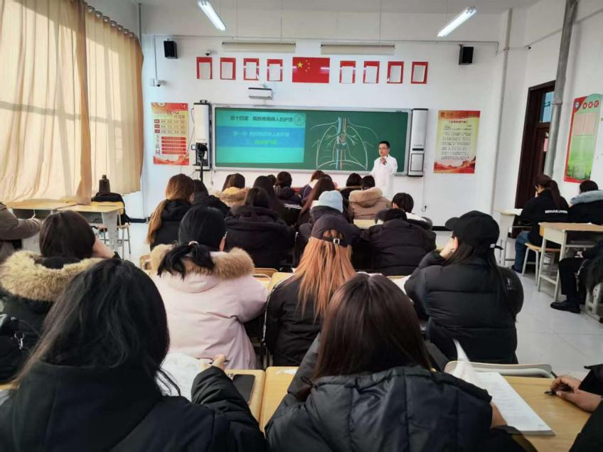 护理系教师奚伟的课堂,实现了“冰城”哈尔滨与“雪都”阿勒泰的巧妙呼应。他从两地共有的冰雪文化切入,以“阿勒泰滑雪游客胸部损伤”为案例,迅速拉近与学生的距离。课堂上,奚老师还展示了自制的“胸膜腔内负压变化模拟器”,把抽象的病理机制变得直观可视。结合SP病人模拟急救演练,学生们从被动听讲变为主动参与,课堂气氛热烈。这堂课融合了地域特色、工匠精神与人文关怀,生动诠释了寓教于乐的真谛。