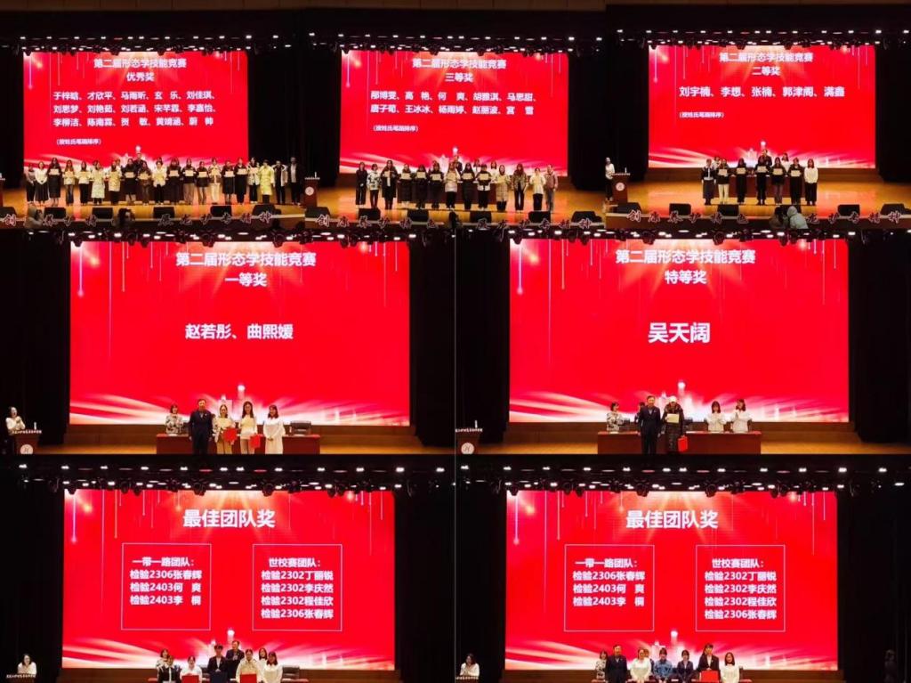 表彰大会三位教研室主任夏春梅、徐丽丹、李东旭依次宣读获奖名单,33名形态学竞赛获奖者、3名国家级赛事优秀奖获得者、4名省级团体二等奖获得者分批上台领奖。检验2403班何爽作为获奖学生代表发言,分享了成长感悟,朴实的话语中满是对梦想的执着,传递出坚定的逐梦心声。