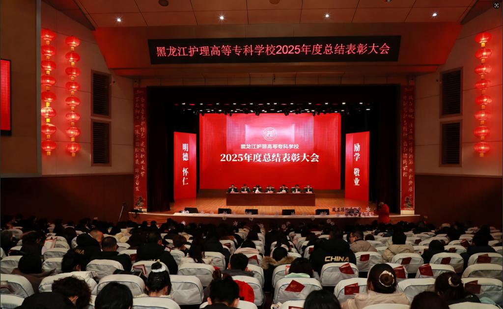 12月31日,黑龙江护理高等专科学校2025年度总结表彰大会在庄严热烈的气氛中隆重举行。大会总结过去一年的奋斗历程,表彰先进典型,凝聚共识力量,动员全校师生携手奔赴新征程。党委书记田国忠出席大会并讲话,副校长杨丽妲主持会议,学校领导班子、全校教职工和学生代表参加会议。