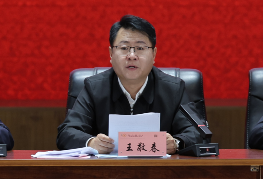 党委书记田国忠在讲话中系统回顾总结了学校2025年的主要工作与显著成绩。他指出,过去一年,学校坚持以习近平新时代中国特色社会主义思想为指导,在党的建设、人才培养、服务社会、文化传承、国际交流、队伍建设、治理能力等领域取得了全面进步:党的建设全面加强,“五金”建设夯实内涵,黑河校区实现“当年签约、当年招生、当年纳入省规划”的“龙护专速度”,产教融合深化拓展,招生就业再创新高,历史遗留问题化解取得突破,教职工获得感幸福感持续增强....他深情赞扬了全体师生员工在过去一年中展现出的奋斗精神和担当作为,强调成绩的取得凝聚着每一位龙护专人的智慧和汗水。