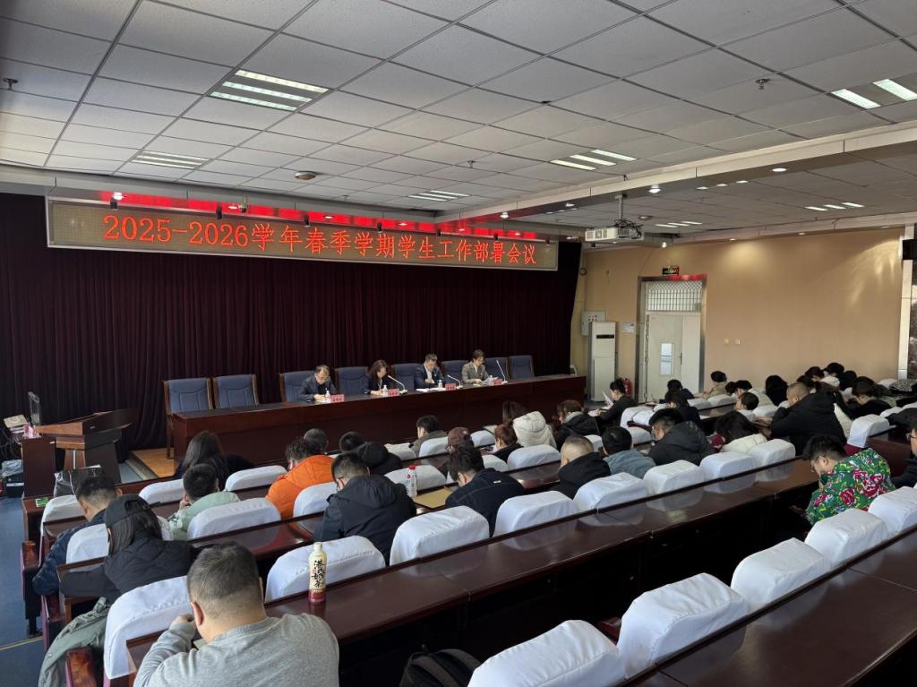 会议强调,2025-2026学年春季学期是学校深化内涵建设、冲刺职业本科办学层次的核心攻坚期,学生工作作为立德树人根本任务的重要载体,事关学校发展大局和人才培养质量。全体学工人员要提高政治站位,牢牢把握“党建引领、科学赋能、精准育人、精细管理、精品建设”核心主线,将“一核、三翼、五维”学生工作模式落到实处;要强化协同联动,统筹四校区资源力量,形成上下贯通、左右协同的工作格局,切实把工作规划转化为具体行动;要锤炼务实作风,聚焦学生思政教育、日常管理、学风建设、心理健康等重点工作,以高度的责任感做好学生服务保障,为学校升本战略落地和“双高”建设提质增效筑牢学工根基。