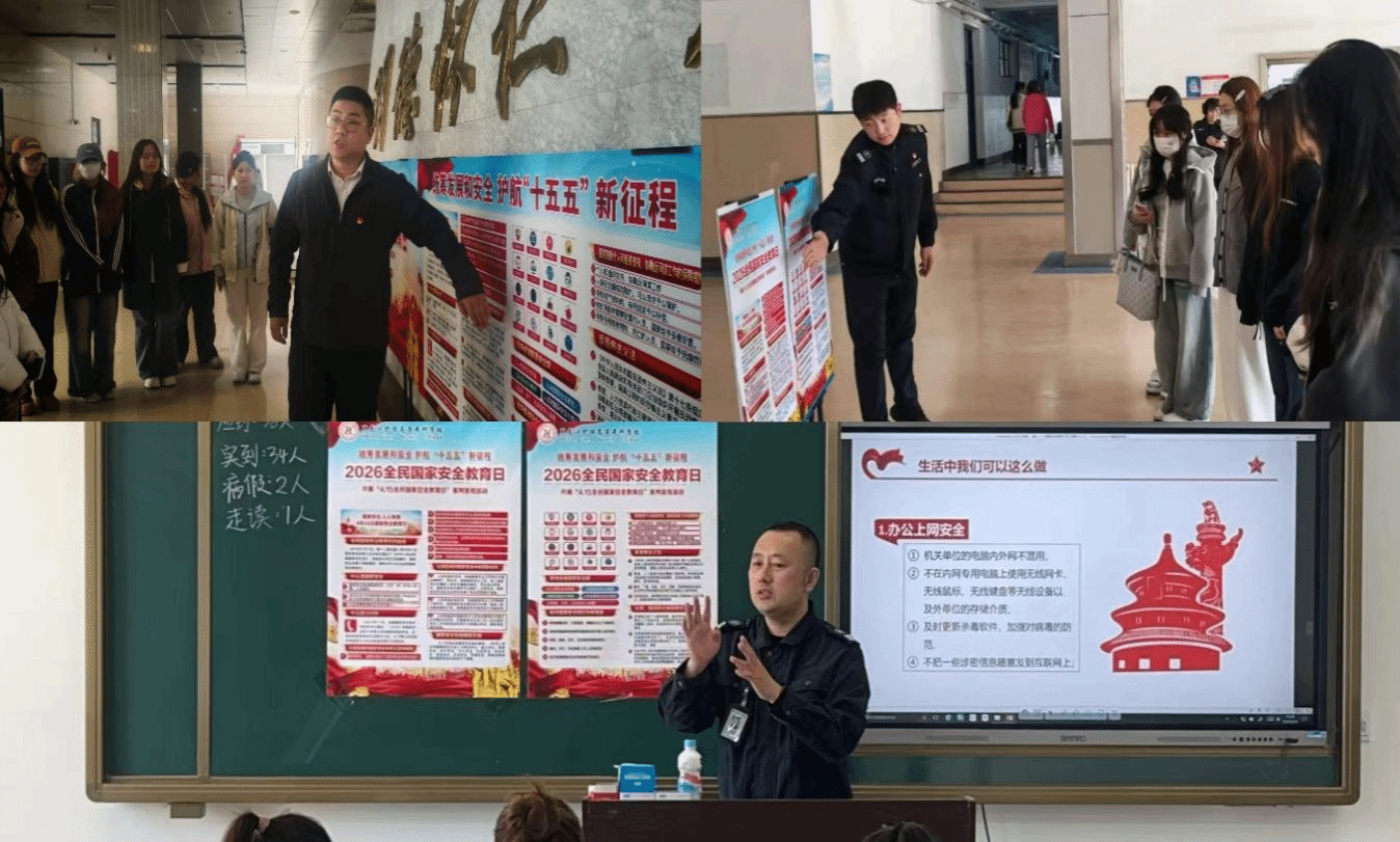 保卫处精心制作主题海报、宣传展板,在教学楼、实训楼、宿舍楼、校园广场等师生密集区域张贴摆放,打造沉浸式宣传阵地;组织全校师生开展国家安全、校园安全、网络安全知识辅导,以线上答题、现场宣讲、互动答疑等形式,推动安全知识入脑入心,提升师生安全素养。