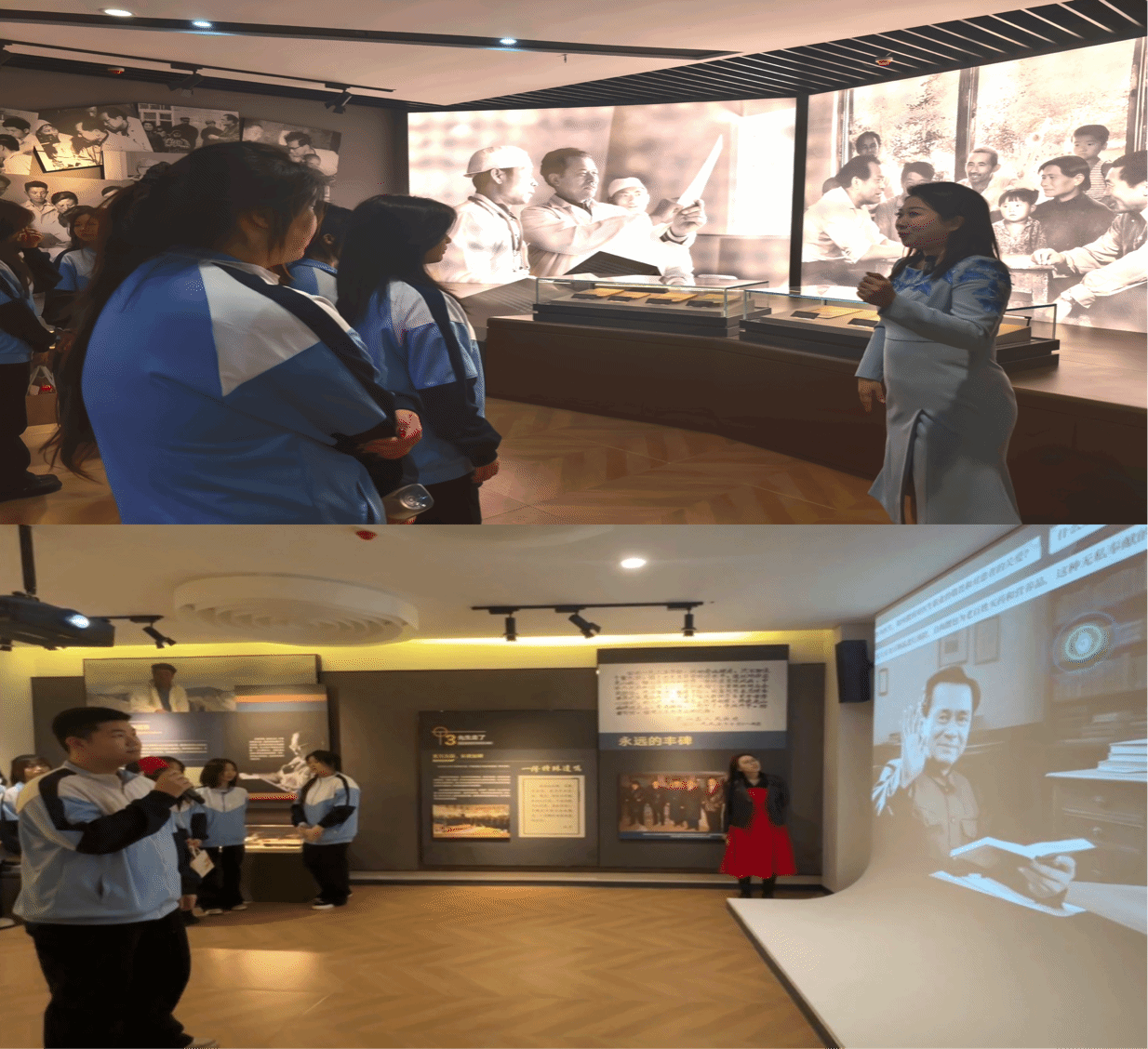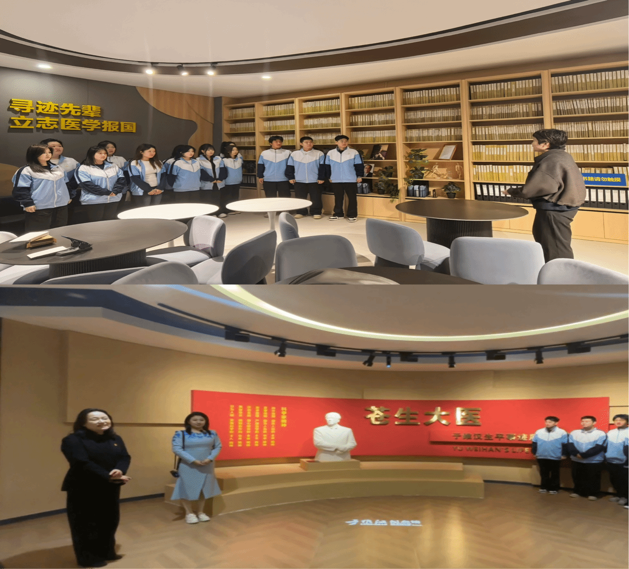 在讲解员尤榕老师的引领下,师生们依次走进各展区,驻足观看于维汉院士的科研手稿、诊疗器械、获奖证书、生活遗物及深入病区、攻坚克难的历史影像与文献资料。一幅幅记录深入病区、科研攻关的历史照片,一件件展现克山病防治历程的展板,真实还原了于维汉院士扎根基层、攻坚克难,倾尽毕生心血攻克克山病难题、守护人民生命健康的奋斗岁月。师生们驻足凝视、认真聆听,深刻感受老一辈医学工作者“敬佑生命、救死扶伤、甘于奉献、大爱无疆”的医者情怀,全方位领悟“大医精诚”的深厚内涵。