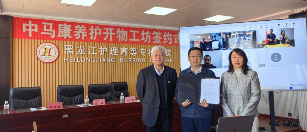 4月15日,中马康养护“开物工坊”项目签约仪式以云会议形式顺利举行。黑龙江护理高等专科学校教务处处长付广权、护理系主任吕波、国际教育部负责人孙洪波出席本次活动,代表学校与马来西亚相关院校及机构正式达成战略合作,开启中马职业教育国际化合作新篇章。