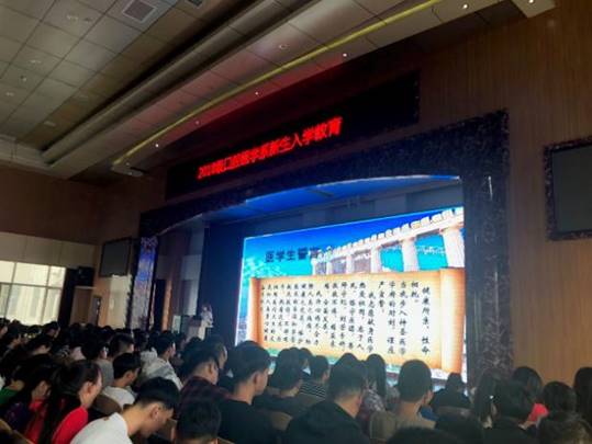 9月3日为期两天的入学教育正式拉开帷幕。上午由教务科付广权科长做教务流程入学教育,让新生知道什么时候上课,在哪上课,如何上课,如何考试,如何查成绩等关键性问题;我系2010级优秀毕业生徐秋幻(现在北大口腔工作)、2009级优秀毕业生张晓薇(现在北京协和工作),回校为新生做经验交流,将他们的学习经历、求职经历、工作经历与新生做了分享,并进行了互动,新生均表示要向学姐学哥们学习,明确目标,做好规划,不负学校,不负青春,争做一个有为有位之人;马玉宏主任进行了系部介绍,让新生了解了系部,明确了来到龙护专的目的;刘鹤颖书记对新生进行了校园文化和人文教育,带领全体新生进行了医学生宣誓,树立新生的医学生理念。下午辅导员深入各自所带班级,开展了第一次主题班会――严格遵守校规校级,做一名不给人添麻烦的合格大学生。