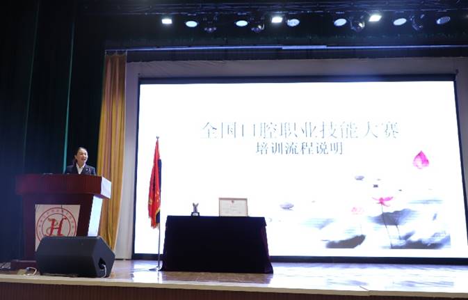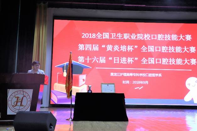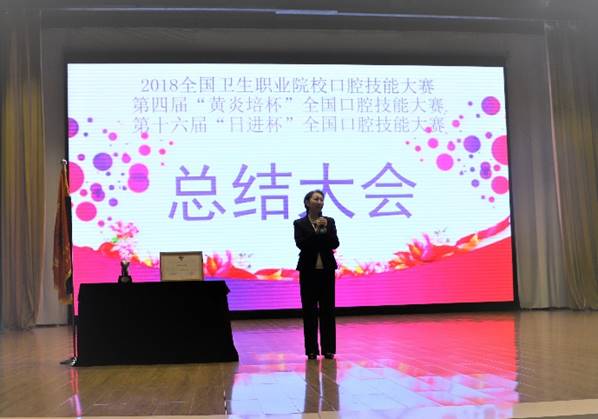 2018年9月7日12:30分,口腔医学系于南岗校区天使剧场举办了“2018年日进杯总结表彰大会”,参加本次大会的有彭波副校长、教务处施泓处长、口腔医学系马玉宏主任、刘鹤颖书记、拜博口腔集团黑龙江分公司总经理王雪、口腔医学系全体教师及2017级学生,口腔医学系副主任隋红主持了本次总结大会。