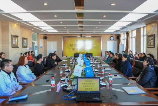 双方在黑龙江现代护理实训中心七楼会议室进行座谈交流,龙护专教务处处长施泓同志首先代表我校对哈尔滨职业学院护理学院教学团队表示热烈欢迎,请哈职院护理学院教学团队观看我校70年校庆专题记录片,展现我校总体概况及七十年悠久的发展历程。而后龙护专护理系主任林杰同志向前来交流的教学团队介绍高水平护理骨干专业建设,护理教学特色,护理专业教学保障及成果。哈职院护理学院党总支书记马国香对前来交流的教师代表进行介绍,代表哈职院对我校接待工作表示感谢并对我校教育教学发展以及取得的办学成绩表示赞赏,希望进一步加深双方的了解建立长久友谊,为未来更加深入的合作打下了良好基础。