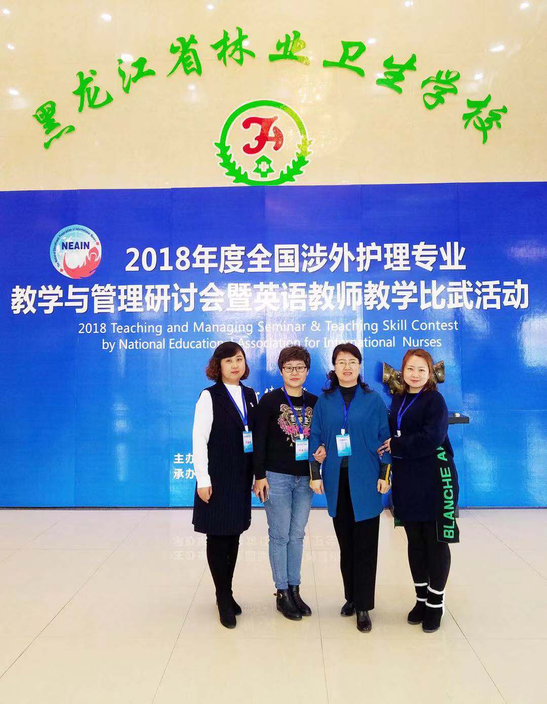 2018年11月16日-21日,在黑龙江省佳木斯市举行了全国涉外护理专业教学与管理研讨会暨英语教师教学比武及培训活动。涉外护理系系主任赵霞、书记孙洪波带领本系7名教师参加了此次活动。来自全国的35所院校的教师们通过研讨、交流、培训、比武、观摩、讲座等活动互相学习,取长补短,以促进英语教学水平的不断提升。