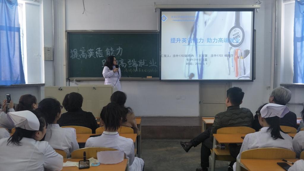 2019年3月1日下午,学院组织开展了提高英语能力,助力高端就业暨高端就业英语培训动员会,孙琳副校长,涉外护理系主任赵霞,涉外护理系书记孙洪波,外事办主任王希文,外事办副主任李博宇,涉外第二教研室的全体教师,两名导员出席活动以及涉外护理系英语方向全体同学共同参加本次动员会。