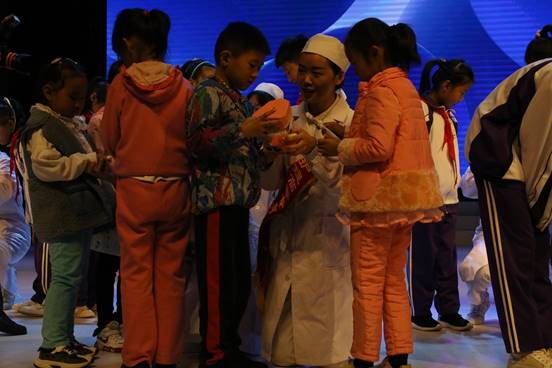 “爱牙天使”志愿服务队以唱儿歌的方式勾引起同学们的热情与兴趣,让同学们知道保护牙齿的重要性。