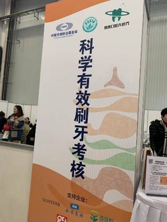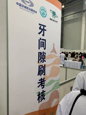 三个项目分成三个区域同时进行考核,参加者自行轮转三个考核,考核通过者考官现场盖章。考核通过才能获取大使证书和培训证书。牙线、牙间隙刷考核,均为边操作边讲解。科学有效刷牙考核则采用“水平颤动拂刷法”,使用智能刷牙指导仪进行操作,APP根据参加者刷牙情况,从刷牙区域、有效时间、方法及频率自动评测得分。