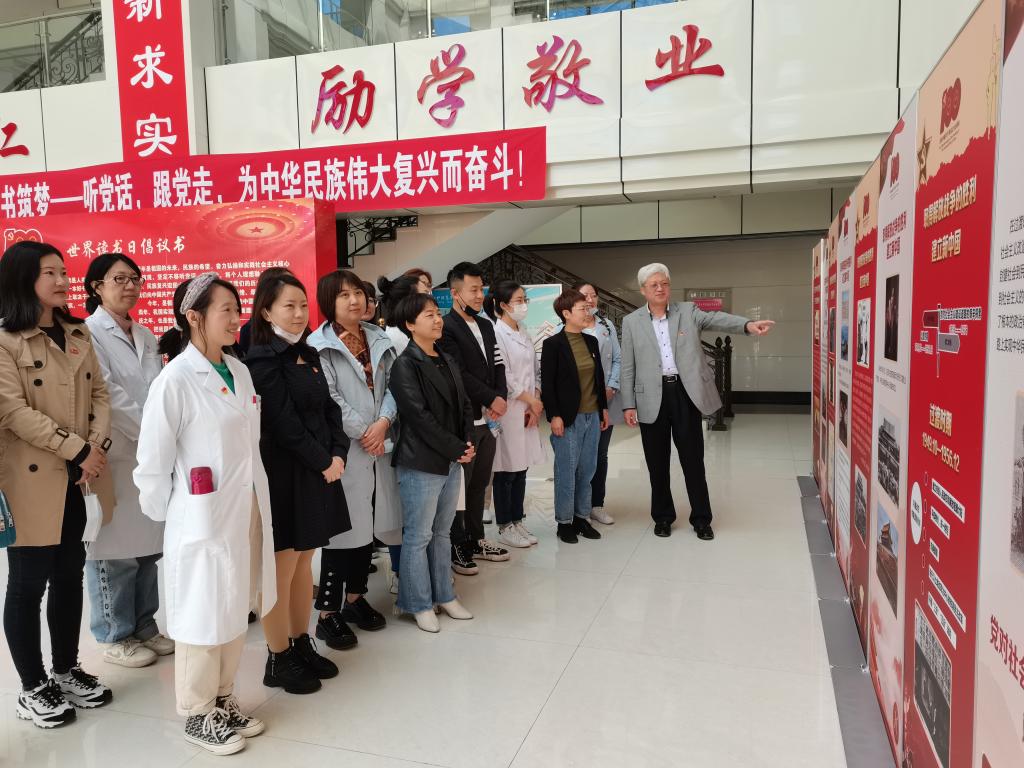为隆重纪念中国共产党建党一百周年,涉外护理系党支部于5月13日中午12时许,在我校阿城图书馆大厅开展主题党日活动。涉外护理系系书记孙洪波、外事办及系部全体党员同志与阿城校区涉外护理系在校生一同参观了阿城校区图书馆隆重展出的《胸怀千秋伟业 恰是百年风华——党史学习教育大型图片展》。