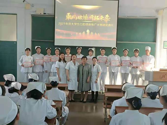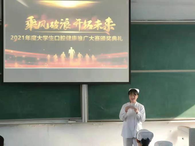 2021年5月27日下午四点,龙护专口腔医学系在行政楼316举办了“2021年度大学生健康口腔推广大赛”颁奖典礼,典礼上口腔医学系马玉宏主任对口腔护理方向的同学提出高度的表扬,对获奖选手给予高度的肯定及深深的厚望。此次大赛参赛选手是19级口腔护理方向和20级口腔护理方向学生,学生们利用业余时间将所学的口腔专业知进行加工,转变为简单易懂、趣味性强的口腔宣教作品,推广口腔保健知识,做到将所学知识做到学以致用。