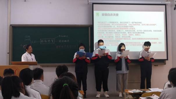 5.课程最后以四名同学的诗朗诵结束,再次将爱国,爱党,爱校的三热爱精神灌输到同学心中。