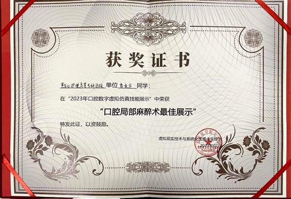口腔医学系韩羽哲,鹿顺宇两位同学,在今年6月30日-7月2日在厦门举办的中华口腔医学会口腔医学专业高职高专年会中,双双荣获“2023年口腔数字虚拟仿真技能展示口腔局部麻醉术最佳展示”奖项。
