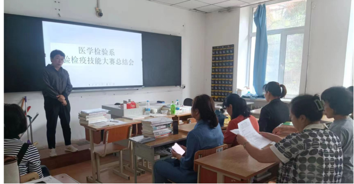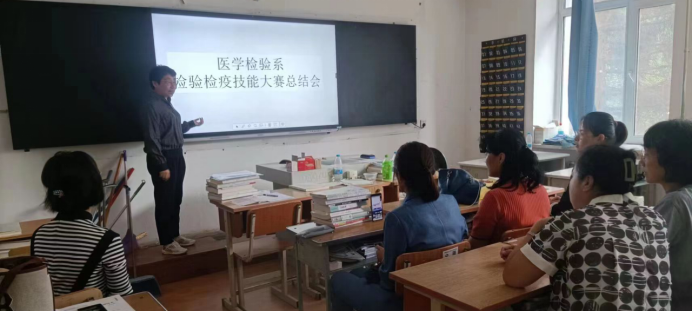 为了更好的“以赛促学、以赛促教、以赛促改、以赛促练”,推进医学检验系专业建设、课程改革,促进学校内涵发展,着力提升人才培养质量。9月1日下午,医学检验系召开2023年全国职业院校“检验检疫技术”技能大赛总结会。孙革新主任主持会议,全体医学检验系教师及参赛学生代表通过线上线下结合的方式参加了会议。