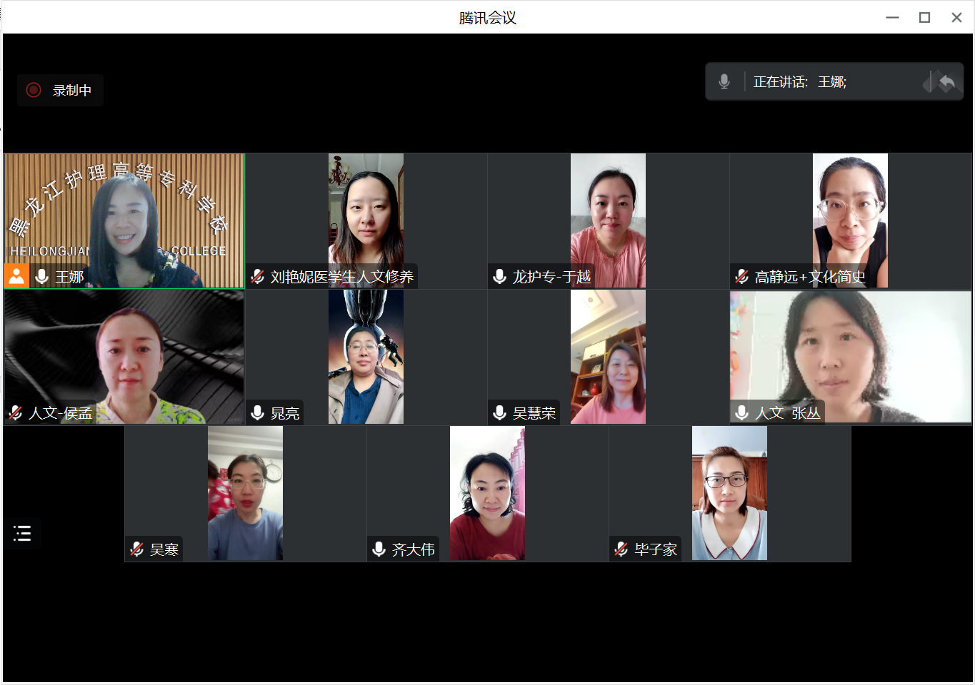 随后,全体参会教师就课程设置、创新教学方法、教学质量评价模式、人文活动的开展、课程思政渗透等问题进行了深入的交流和探讨,相互学习经验、答疑解惑。双方的交流深入而热烈,交流持续了近1个半小时,对于全方位、多领域的交流与合作充满期待。交流结束后,吴慧荣主任介绍了我校开设的医学生人文修养课程的建设情况,提出了医学职业教育中的人文教学特色,以理论形成方法来指导实践。着重介绍了医学生人文教育三维度,即人文知识的积累、人文精神的养育、人文关怀的言行,将人文精神内化于心,外化于行,从根本上达到立德树人。最后,廖林楠主任表示,希望以此次交流为契机,加强与哈尔滨医科大学人文学院的交流合作。