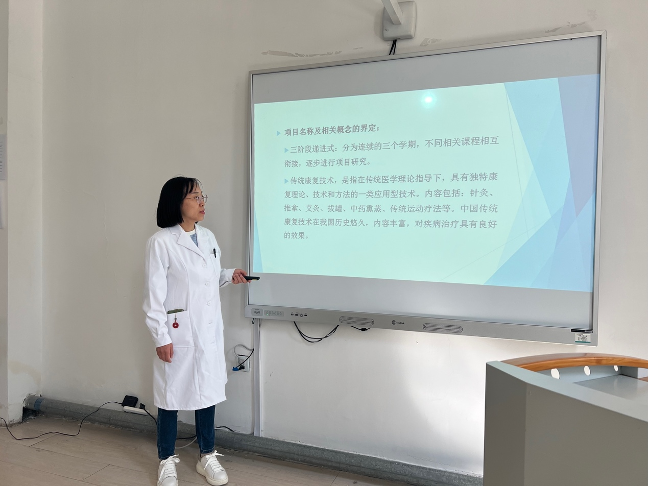 课题主持人张艳艳,对课题《以临床需求为导向“三阶段递进式”传统康复技术技能实践教学改革研究》的开题报告进行阐述,报告对选题的背景及意义、研究目标、研究内容、研究措施、组织分工、研究困难等进行全面阐述。该课题根据从才培养目标出发,努力培养具有“以临床需求为导向,与岗位相对接”的传统康复技术技能应用型人才。构建完整的传统康复技术技能评价标准。以实现真正的技术过硬,素质优良,可发展,可转型,可提高的高素质技术技能人才培养目标。