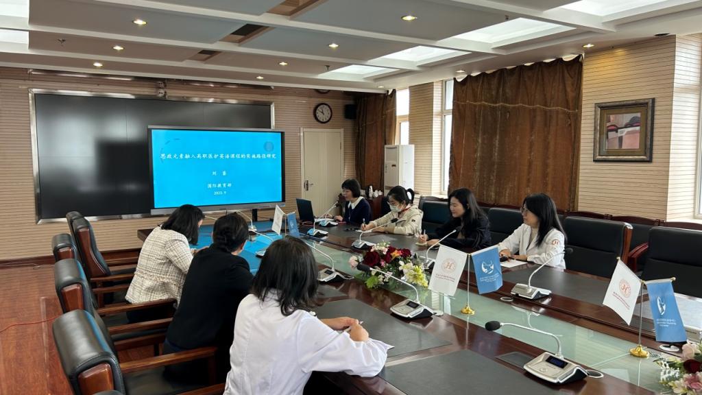 2023年9月25日上午,《思政元素融入高职医护英语课程的实施路径研究》课题开题报告会在护理实训楼701室顺利召开,护理系主任林杰、科研处尹宏月老师、思政部吴丽娜老师莅临指导,课题负责人刘鎏老师及课题组成员参会。