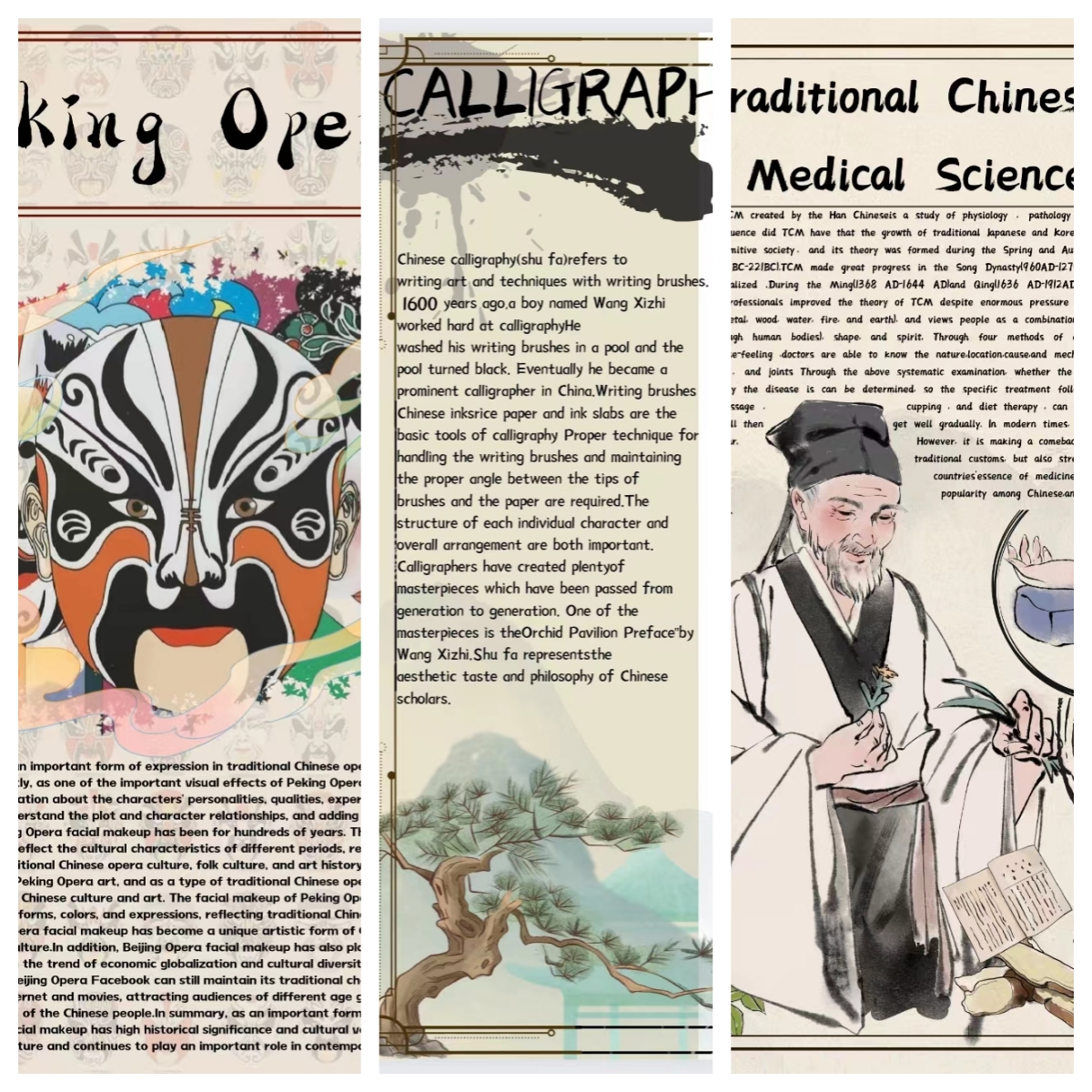 在课堂教学中,赵慕白老师注重“三融合三协同”,即将历史文化与现代科技相融合、职业教育和就业指导相融合、英语基本功训练与“文创”应用相融合,最终达到思政教育元素与传承历史相协同、课程目的与育人效果相协同、学生能力培养与面向未来的专业潜力相协同。在她的指导下,原来“沉沉”的课堂活起来了,学生“动”起来,产品呈现出来了,育人成效得到极大彰显。学生创作个多种以《我眼中的国韵传承》为主题的古风电子英文海报、文创作品等受到一致的认可。