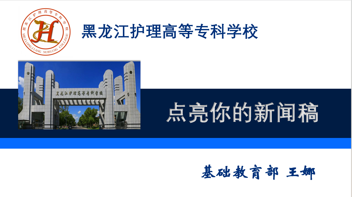为充分调动全校参与宣传报道和舆论引导工作的积极性,营造出“宣传一个,带动一片”的良好工作氛围。我校宣传统战部于2023年11月2日下午在南岗校区护理实训楼6楼阶梯教室组织召开宣传思想文化工作会议,会上基础教育部人文修养教研室主任王娜老师为全校通讯员进行新闻写作培训,旨在提高通讯员新闻写作的技能和水平,调动各部门通讯员积极性,为实现我校高质量发展目标贡献力量。