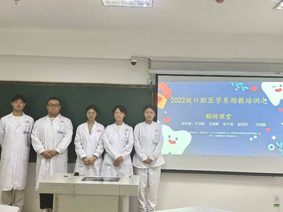 本周翻转课堂的培训主题是“根管治疗”。主讲助教将根管治疗的ppt分为四大部分,由五位助教分别讲解。五位助教在讲解的过程中,对重点内容进行强调,并对重点问题进行随机提问,指导老师则在台下对主讲助教讲课的内容和助教们的表现进行记录,在培训结束后进行点评并提出建议。