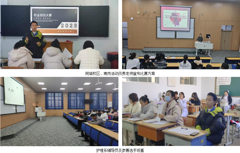 为提高我省高校大学生职业生涯规划意识与能力,引导广大龙江学子树立正确的价值观、就业观和成才观,为校赛推送优秀参赛选手,根据《关于举办“大庆油田杯”第11届黑龙江省大学生职业规划大赛的通知》精神,指定本方案。2023年11月14日护理系南岗校区和阿城校区分别举行了护理系校园职业规划大赛,护理系全体辅导员及47名参赛选手参加。