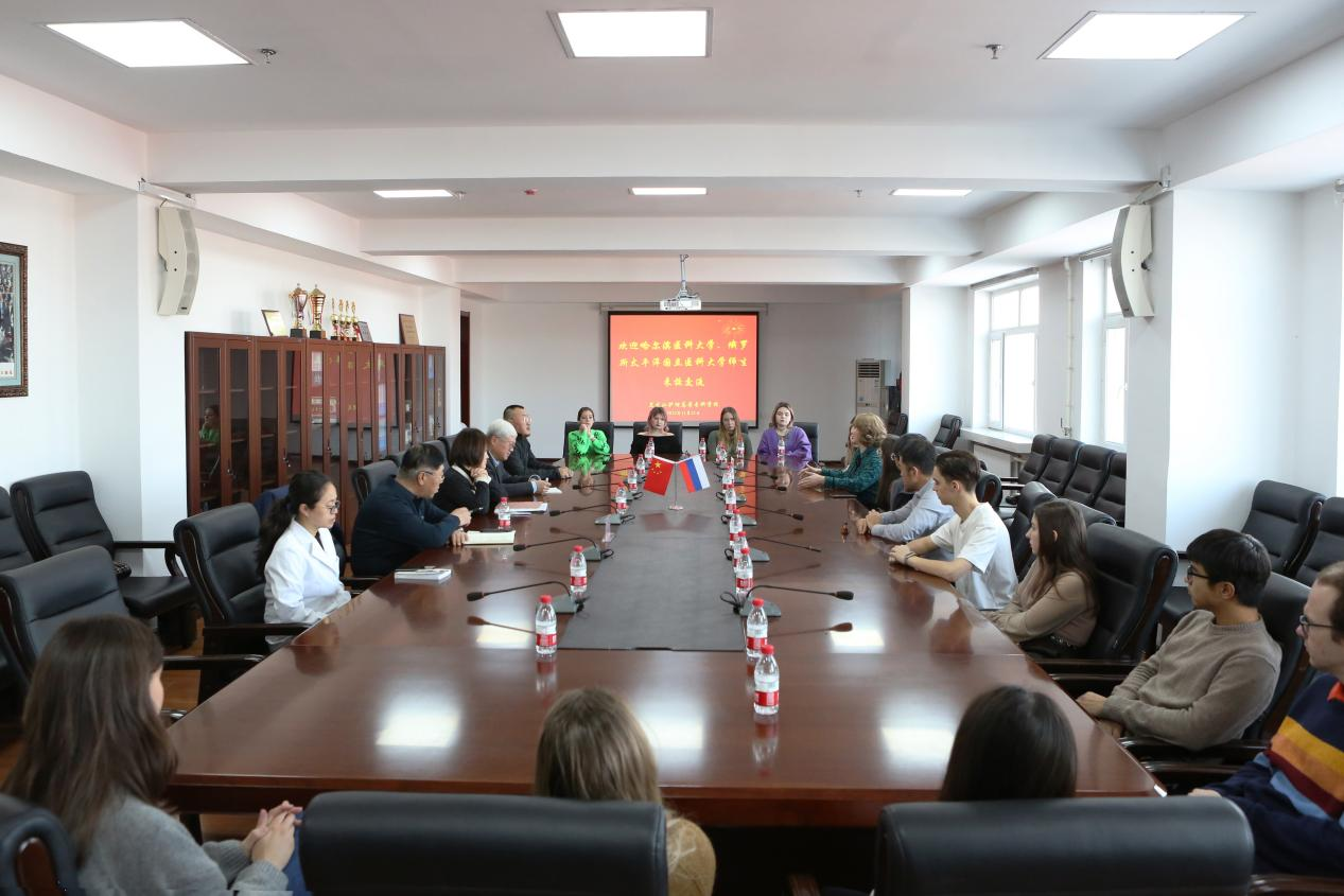 11月23日,哈尔滨医科大学国际教育学院院长赵霁阳、国际教育学院副教授刘岩、俄罗斯太平洋国立医科大学国际交流处老师叶普尔·萨巴瓦(EPUR ZABAVA)、哈尔滨医科大学国际教育学院娜塔莉亚·克拉莎娃女士(Natalia Kurashova)及俄罗斯太平洋国立医科大学、莫斯科国立第一医科大学优秀学生代表一行17人来访我校,副校长杨丽妲、康复医学系主任鞠志江、国际教育部主任孙洪波等参加此次会谈。